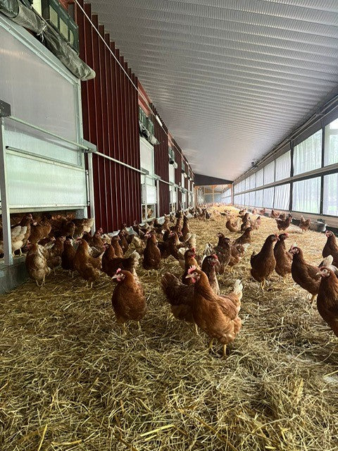 Ruskeat, maistuvat ja hyvin vaahtoutuvat luomumunat. Kaitsin pelloilla kasvaa kauraa, seosviljaa (kaura/ohra), vehnää, ohraa, hernettä, härkäpapua ja nurmea. Tulevan sadon käytämme omille kanoille rehuksi.